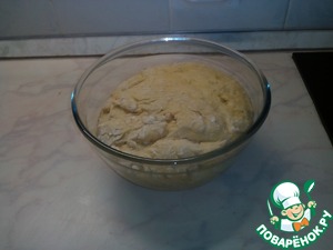 Вобьем по одному яйца. Замесим тесто. Если оно слишком липкое, добавим еще муки. Выложим в смазанную растительным маслом миску, накроем полотенцем и оставим тесто подходить в теплом месте в течение часа.