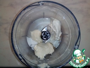 Сделаем топинг: смешаем все ингредиенты в чаше блендера и взобьем. Если получается плохо, можно добавить еще жидкостей - лимонного сока или молока.