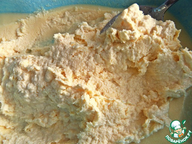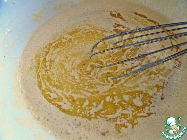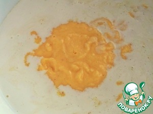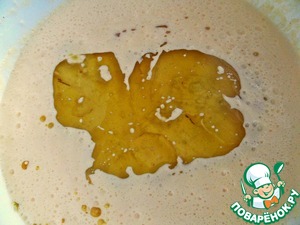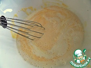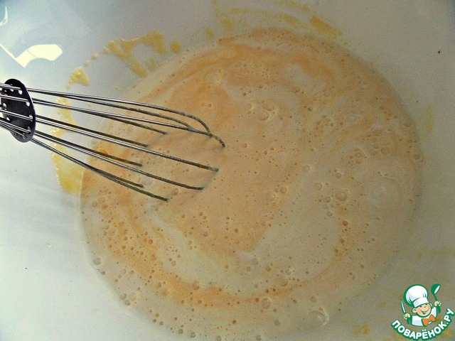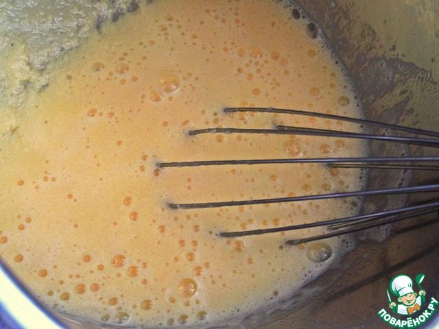 Влить тонкой струйкой нагретое молоко, помешивая.
