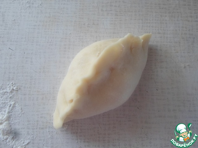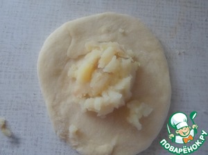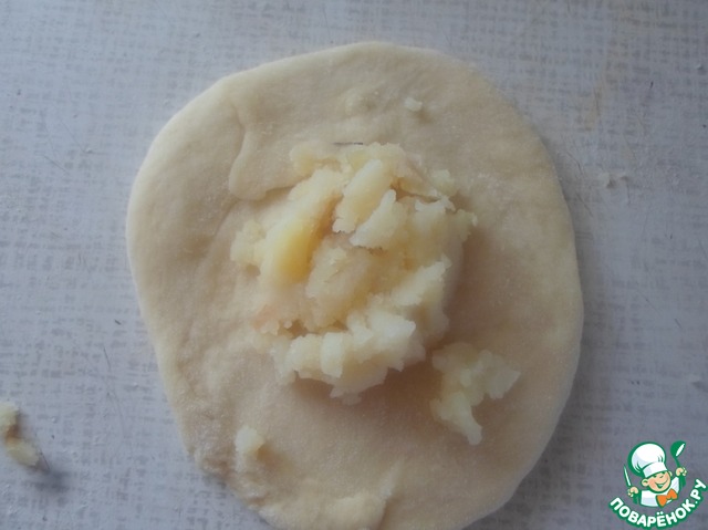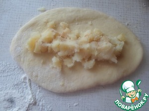 • Формируем голову. Раскатываем лепешку, на середину выкладываем начинку.