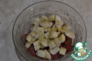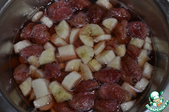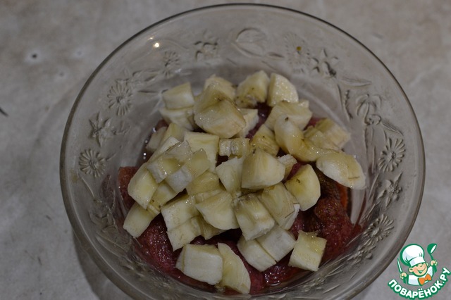 Мелко нарезанные бананы перемешиваем с клубникой.