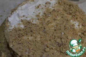Полностью застывший торт засыпаем крошкой светлых пряников.