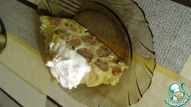 Рецепт «Пельменный пирог с двойной начинкой»: