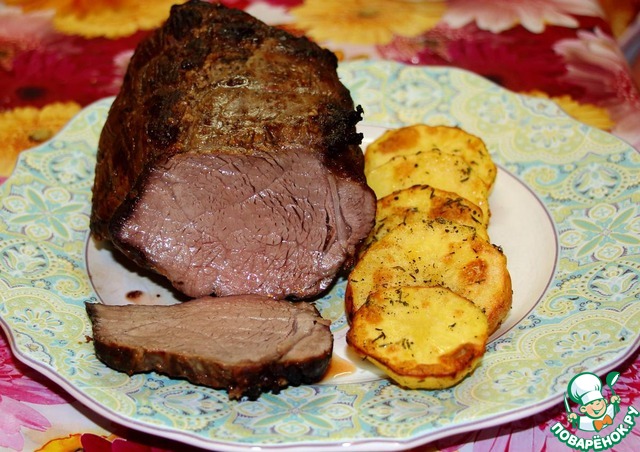 Ну попробуем? Мясо получилось сочнейшее, хотя и не очень мягкое. У меня, ведь, не вырезка, не помню уже что за часть была. Я люблю пожевать... Возьмете вырезку, будет ещё и таять во рту.