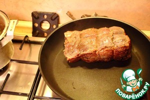 Вступление окончено, теперь экшн и наука! Берем мясной наш параллелепипед и каждой стороной прикладываем на раскаленную сухую сковородку придерживая прямо рукой. Запечатываем таким образом все мясные соки внутри.