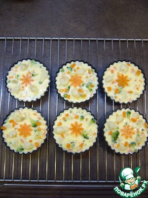 И выпекать в заранее разогретой духовке примерно 15 минут при 180гр. -