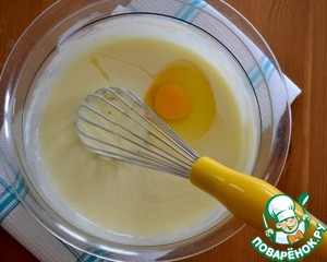 Добавить по одному яйца, каждый раз тщательно перемешивая.