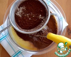 В конце добавить просеянные какао и муку с разрыхлителем.