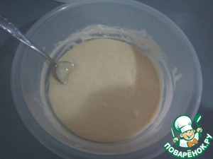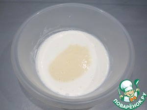 Влить яично-сахарную смесь в кефир.