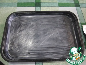 Включаем духовку на 180 градусов. Подготавливаем противень, хорошенько смажем его сливочным маслом.