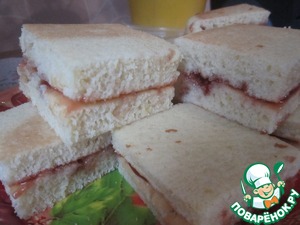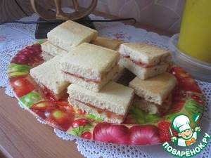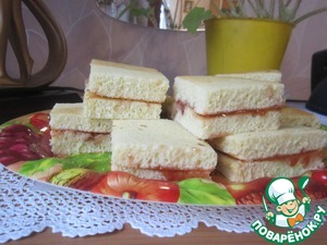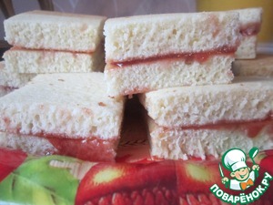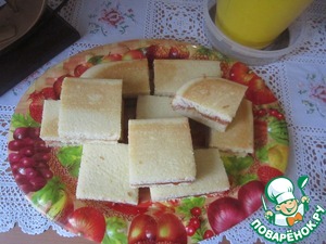 Выпекать в течении 15-20 мин., НО не передержите, чтобы лимоннички не были сухими. Готовое изделие разрезаем напополам, перемазываем чем душа желает ( у меня джем из смородины ), кладем половинки друг на друга, разрезаем на пироженки, и... делаем чай и пробуем)))