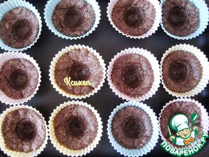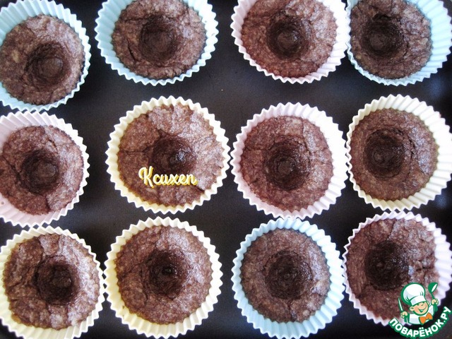 ... достаём формочки из духовки и, например ручкой от деревянной скалки, сделаем углубления в корзиночках. Снова отправляем корзиночки в духовку допекаться до готовности. У меня на это ушло ещё 5 минут. Готовность у шоколадного теста на взгляд определить не просто, поэтому я ориентировалась на то, что тесто отошло от формочек. Готовым корзиночкам дадим полностью остыть в формочках, затем вынимаем их из формочек.