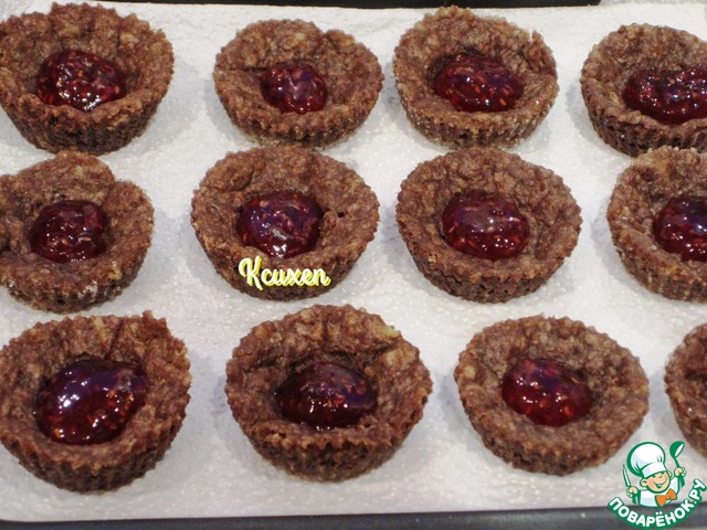 Углубление каждой корзиночки заполняем малиновым джемом.