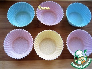 Через 1 час формочки смазываем небольшим количеством растительного масла и присыпаем сахаром.