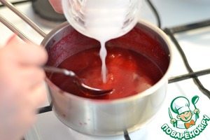 Размешать крахмал в воде и потихоньку добавить в малиновую