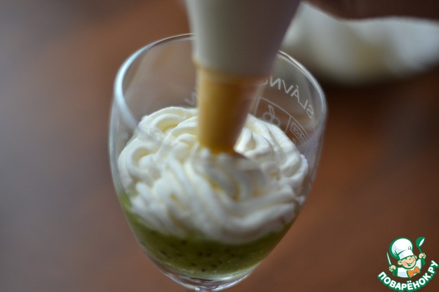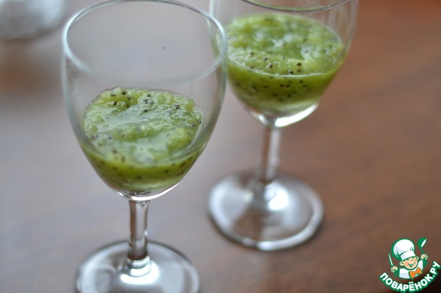 В подготовленные бокалы разкладываем киви на дно.