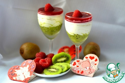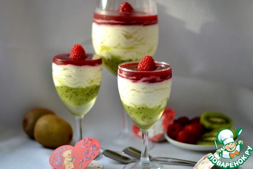 Рецепт «Творожный десерт с малиной и киви»: