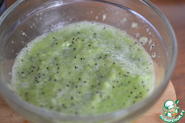 Киви почистить и на блендере перемолоть на кашу.