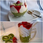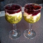 Творожный десерт с малиной и киви