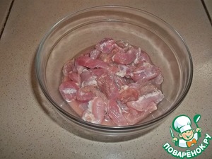 • Кусочек имбиря натереть на терке и через марлю отжать сок, выжать сок из лимона. Мясо нарезать тонкими полосками, посолить, поперчить, залить 1 ст. л. сока имбиря и 1 ст. л. лимонного сока.
