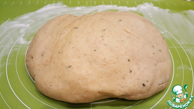 После того, как тесто готово, выкладываем его на рабочую поверхность, присыпанную мукой, немного обминаем и делим на несколько частей для более удобного раскатывания.