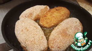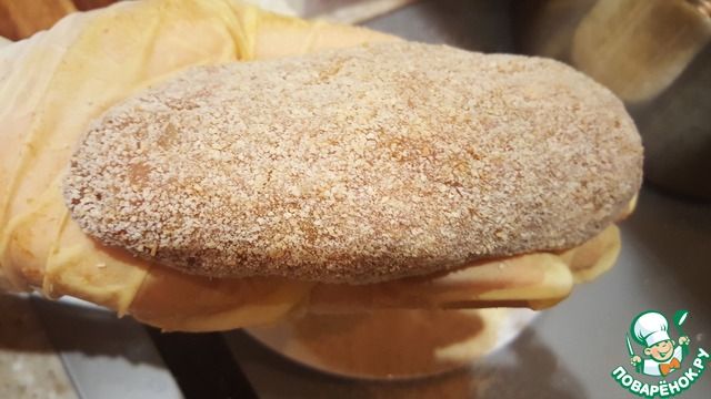 Формируем котлетку и обваливаем в панировочных сухарях. Включаем разогрев духовки 180*.