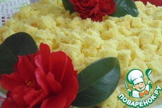 Этот нежный, влажный, необыкновенно вкусный торт в Италии принято печь во время празднования наступления весны, а именно 8 Марта! И торт, на мой взгляд, полностью оправдывает своё название - ну настоящая мимоза! Такой же жёлтый, пушистый и нежный!... )) На сейте уже есть несколько рецептов "Мимозы", но все они отличаются от моего варианта. Я хочу предложить вашему вниманию торт "Мимоза", каким его пекут на севере Италии. P.S. Процесс приготовления торта достаточно не сложен, а длинное описание к рецепту..., для того чтобы каждый смог справиться с его приготовлением!