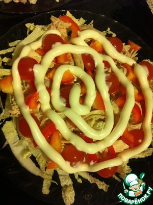 Рецепт этого салата привезла моя подруга из Крымской деревеньки местного кафе. Нами он очень полюбился, муж его просто обожает! Очень легкий в приготовлении и на вкус!
