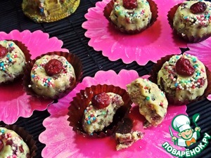Если нет формочек для конфет, не беда! Берём формочку для мини маффинов, смазываем легко растительным маслом без запаха и насыпаем на дно цветную крошку.