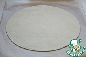 Раскатываем и обрезаем на 4 круга - у меня диаметром 23 см. Обрезки сохраняем - они понадобятся нам для украшения.