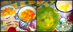 Вливаем апельсиновый "жмых" во взбитые яйца. Перемешиваем.