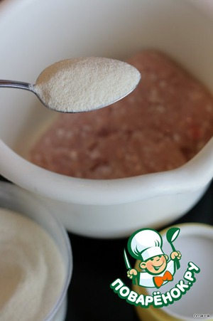 Добавляем в фарш манную крупу, солим по вкусу, хорошо перемешать