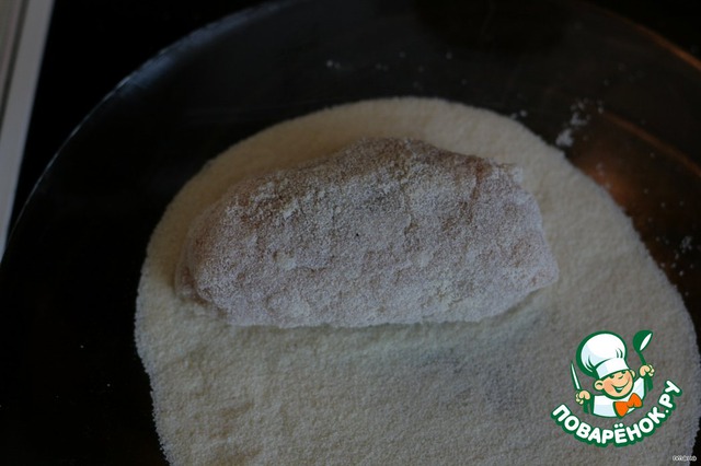 (у меня не было сухарей, обваливала в той же манке) -