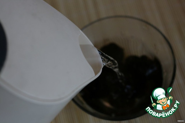 Тем временем готовим начинку. Моем и заливаем кипятком чернослив