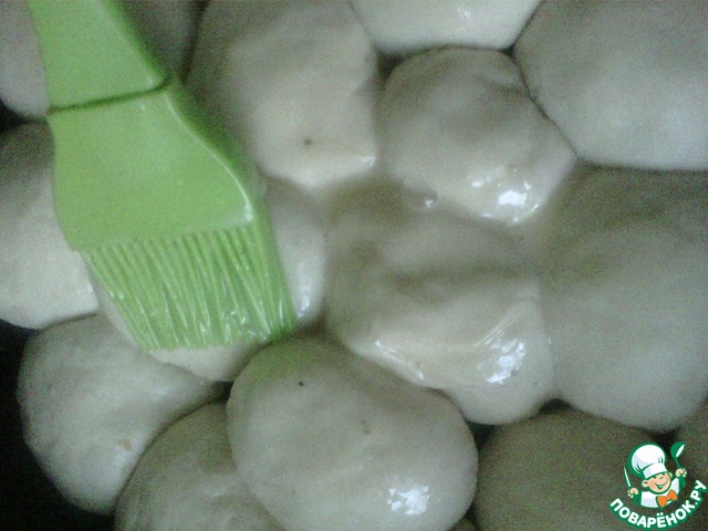 Ставим на расстойку на 1 час затем смазываем яйцом.