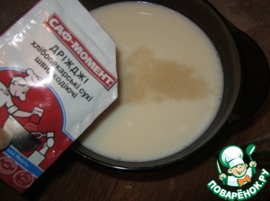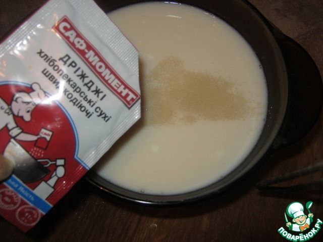 Делаем тесто. В теплом молоке растворяем дрожжи сухие быстродействующие «Саф-Момент»