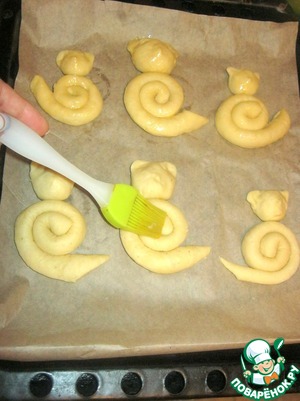Выложила на противень, застеленный пекарской бумагой, смазала взбитым яйцом.