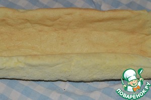 Немного крема отложить, чтоб покрыть готовый рулет сверху. -