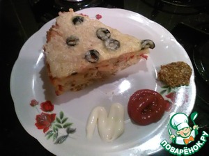 Вынимаем и режем на порции. Подаем с майонезом, кетчупом и горчицей. Приятного аппетита. Спасибо