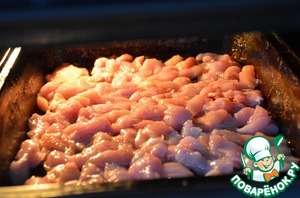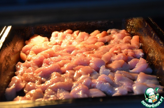 Выкладываем филе на противень. Запекаем его минут 20-25. Вынимаем курицу из духовки.