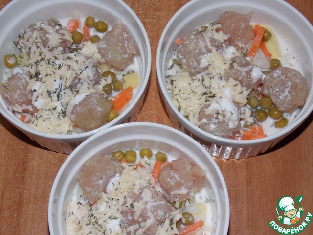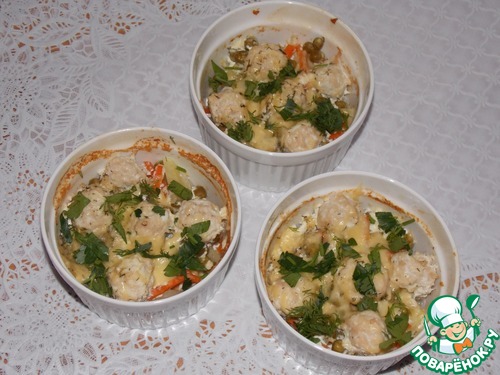 Рецепт «Фрикадельки с овощами под сметанным соусом»: