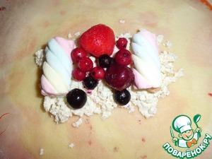 Дальше выкладываем любимые ягоды. Маршмеллоу достаточно сладкий зефир, поэтому я не добавляла дополнительный сахар.