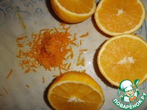 Снимаем цедру с одного апельсина, выжимаем сок (из двух).