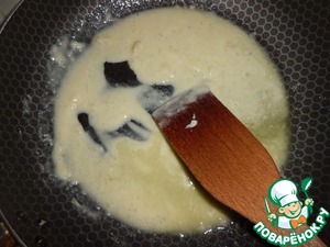 Растапливаем сливочное масло на сковороде, добавляем муку и размешиваем.