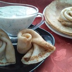 Танечка, принимай мой отчетик! Замечательный соус ! Свежий, немного солоноватый,он отлично подчеркнул вкус блинчиков и добавил им некую изюминку! Танечка, лимон не добавляла. Как оказалось, его у меня не оказалось.В следующий раз обязательно добавлю его. Спасибо большое за рецепт!