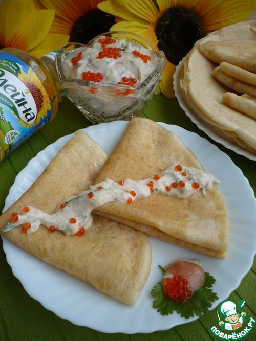 Готовится этот соус с любой икрой очень быстро, а подавать его можно к блинчикам.
