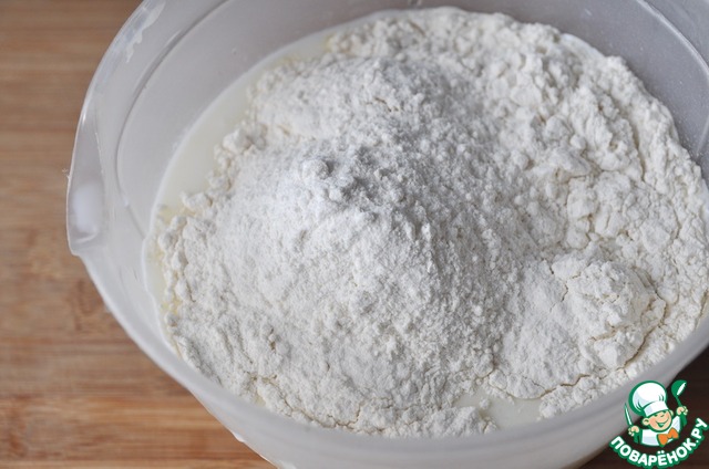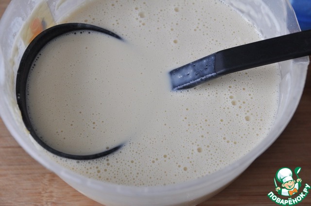 Тесто не должно быть сильно жидким, консистенция, как кефир.