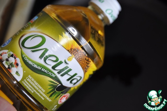 Добавляем смесь подсолнечного и оливкового масла от "Олейна", перемешиваем.