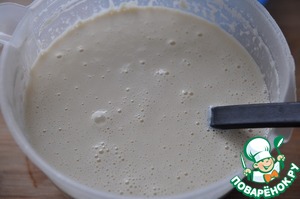 Добавляем соль, сахар, яйца, муку. Перемешиваем миксером до полного растворения комочков муки.