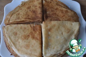 Для приготовления одной порции блинных рулетиков, нам понадобится 3 готовых блина. -